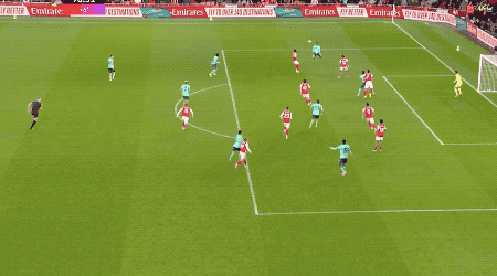 这一次进攻结束,阿尔特塔连换三人,厄德高、梅里诺、特罗萨德登场,马丁内利被换下。